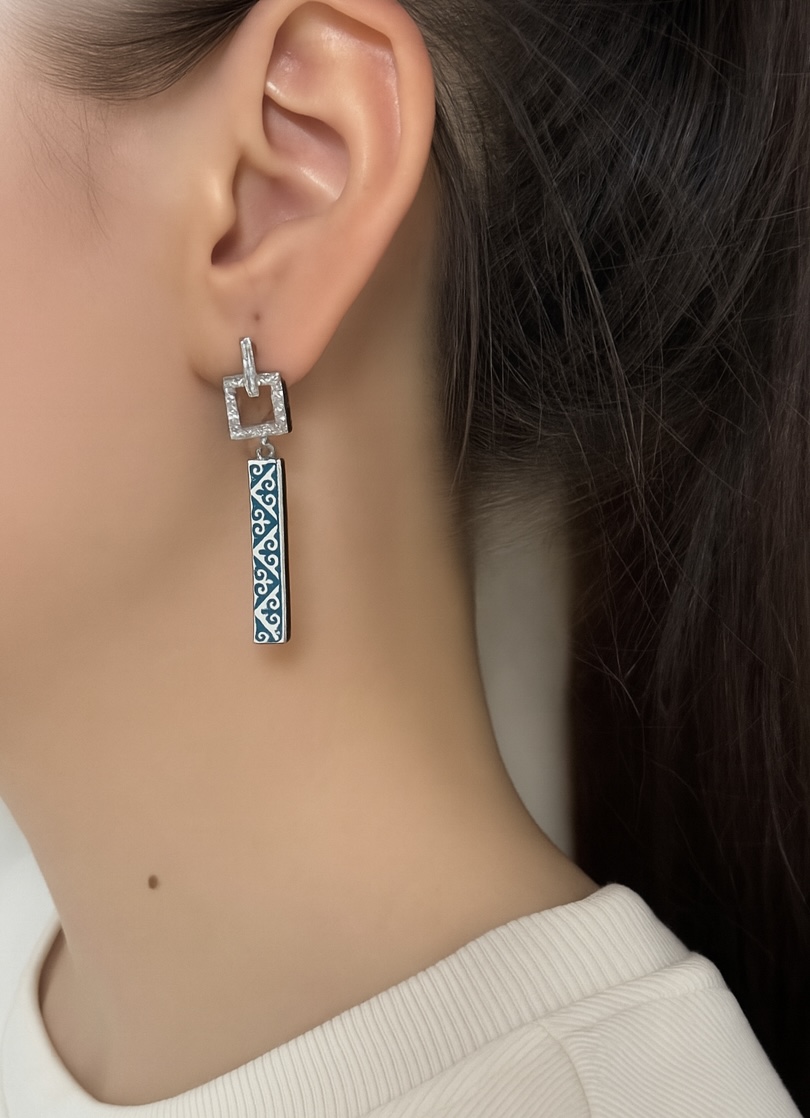 Краткая характеристика: Серебряные серьги Balausa Syngyrlak– это утонченное сочетание традиции и современности. Их изящный казахский орнамент «қошқар мүйіз», символизирующий силу и изобилие, искусно подчеркнут эмалью небесного цвета. Чистый голубой оттенок напоминает бескрайние просторы степи и ясное небо над Казахстаном, придавая украшению особую лёгкость и свежесть. Лёгкие и элегантные, эти серьги станут символом внутренней гармонии и связи с корнями, подчёркивая индивидуальность своей обладательницы.